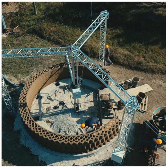 WASP 3D printer with insulation inside printed walls [10]. Reprinted with permission from Ref. [10]. 2018, WASP.