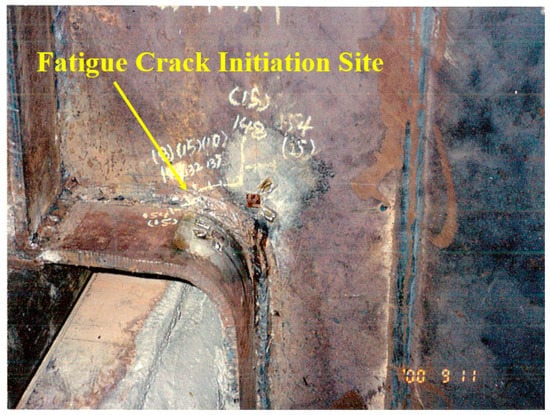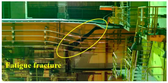 To reduce steel consumption, a large number of crane girders have variable-section supports. However, engineering applications have shown that the variable-section supports of steel crane girders are prone to fatigue fracture, especially when the girders are subjected to highly frequent crane loads. As service life increases, an increasing number of fatigue cracks form in the variable-section supports of steel crane girders. In China, such fatigue problems in variable-section supports are a major potential risk for safe operations. On 13 January 2014, a variable-section support of a steel crane girder in a metallurgical plant suddenly exhibited fatigue fracture, which caused the crane to drop the ladle, resulting in significant economic losses (Figure 1). The reasons this accident and similar phenomena occur are the lack of the appropriate S-N curves for the variable-section support and the fact that the frequency of use is much higher than the original design benchmark due to the large increase in production. The average service life of steel crane girders with variable-section supports is less than 20 years in metallurgical plants with heavy cranes. For long-term maintenance work in industrial buildings, Baosteel found that the establishment of a safety monitoring system that regularly checks whether cracks have formed in the variable-section supports could effectively avoid catastrophic accidents. Therefore, accurately predicting the fatigue crack initiation site and time to provide a scientific basis for a general monitoring system is an urgent engineering problem.