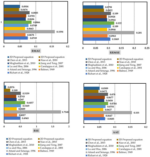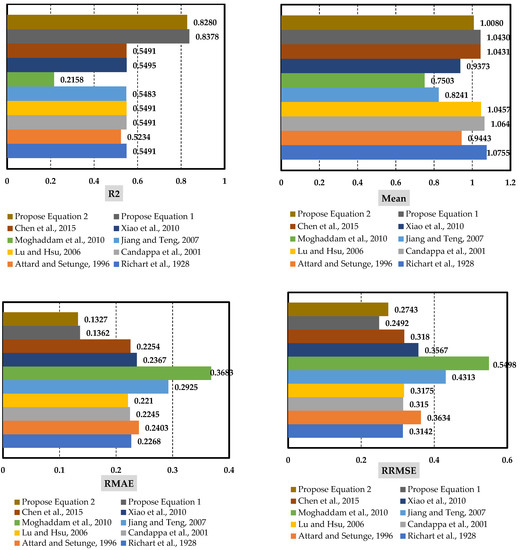 Using nonlinear regression analysis done by MATLAB and SigmaPlot software, and according to statistical indicators including root mean square error [66], and the coefficient of determination [66,67] (Equations (5)–(7)), the best expression is selected.