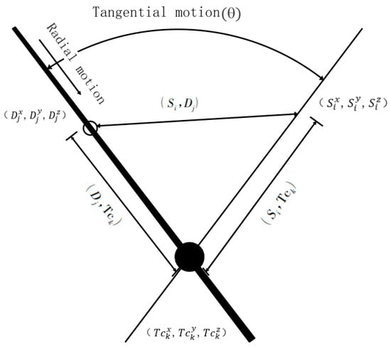 Regardless of the horizontal motion of the tower crane or the vertical motion mentioned below, the specific operation of the tower crane is controlled by a human, and the coherence of the tangential motion and radial motion in the horizontal motion of the tower crane will be influenced by the operator’s operation level, so a coefficient α is introduced to measure the degree of coherence of the tangential motion and radial motion, and its value ranges from 0.0 to 1.0 motion, and the more discrete the radial motion, the longer the horizontal running time . is finally expressed in Equation (7) as: