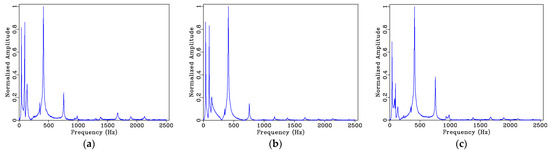 The DFT was performed on the above time-domain signals, and the frequency distributions and amplitude value changes of the response signal in the frequency domain were studied. Figure 12 reveals that the main frequency components with higher amplitude in the acceleration response signals are generally distributed in the range of 0 to 1 kHz.