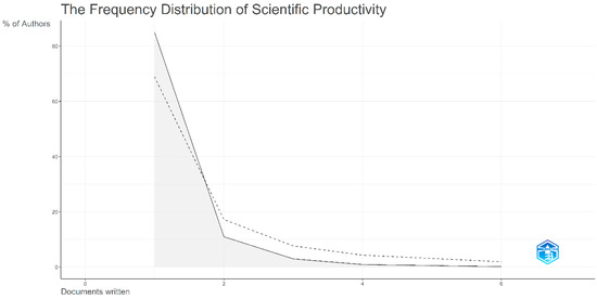 Lotka’s law for authors’ productivity, performed with Biblioshiny version 4.0.