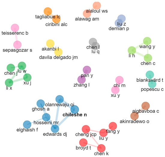 The authors with the highest number of publications are listed in Table 4. Edwards D.J. published the highest number of documents with a total of six documents, followed by Chileshe N., Elghaish F., Li H., Liu Y., Liu Z. and Xu Y., with a total of four articles. Two of the first three authors are from the UK, i.e., Edwards D.J. and Elghaish F. There are also three authors from China, i.e., Liu Z., Xu Y. and Chen C., two from Hong Kong, i.e., Li H. and Liu Y., one from Australia, i.e., Chileshe N. , one from USA, i.e., Anumba C.J., and one from Norway, i.e., Hosamo H.H.