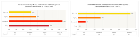 - Variations in the system usage sequence impacted the users’ perception of the helpfulness of the overhead view in IVRIE. A comparison showed that the percentage of participants who perceived having the overhead view in IVRIE as helpful was lower when they used IVRIE first and DT second, compared with those following the opposite system usage sequence.