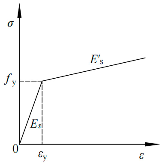 The stress-strain model of steel bar adopts elastic-plastic double diagonal model (Figure 1). The constitutive relationship of the model is calculated as shown in Formula (6):