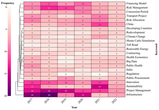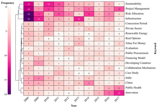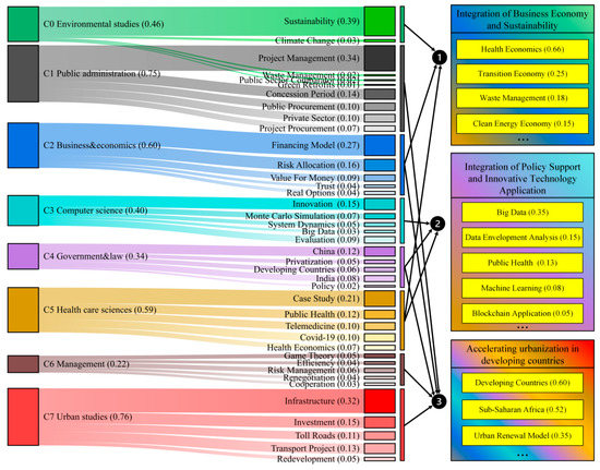 First, sustainability and risk allocation are the main research topics of this period. Despite the rapid growth in the frequency of innovation, the private sector remains concerned about the risks of emerging PPP projects. The risks and uncertainties of policy also limit the investment growth in sustainable projects [36]. Especially in the areas of renewable energy and public health.