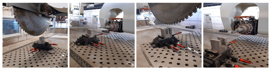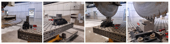 To manage the robotic subtractive process, EasyStone, as a synchronized software (to the robotic lab), after locating the concrete specimens and the clamping table in the lab environment by calibrating their location, can simulate the entire process and make the G-code. In the next step, each part (or surface or edge) of the joints’ geometries is selected individually at the operator’s discretion. The operator assigns the appropriate parameters individually, including the tools and their type, milling steps, tool side, approaching directions and angles. In the final step, after evaluating the collision probability and displaying the CNC process simulation, the software’s simulations (G-codes) were produced and sent to the robot to start the manufacturing. A five-axis portal managed the milling processes in the Digital Building Fabrication Laboratory (DBFL) at the Institute of Structural Design (ITE, TU Braunschweig). Although the dimensions of the manufactured and tested elements are the same (Sec: 10 × 10 cm), due to the geometry, selected tools and G-code, the CNC duration and the number of milling tools differs considerably. For instance, the experienced manufacturing of proposed geometry of F5 (frame specimen no. 5) took 256 min, while F7 and F8 were produced by two tools in 72 and 23 min, respectively (Figure 22 and Figure 23 ).