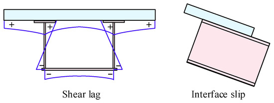Shear lag and interface slip of a steel–concrete composite box beam.