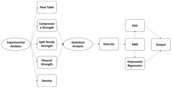 To minimize the experimental work, probabilistic models and constitutive equations are typically developed [16,17,18]. Most probabilistic modeling research focuses on developing mathematical models that illustrate the connection between a material’s behavior and its components. However, predicting a material’s behavior mathematically in the case of non-linear behavior is a highly challenging endeavor. Regression models are one of the traditional methods used in model generation. The main benefit of regression analysis is that it makes predictions easier and faster [18,19].