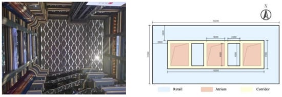 - Ge, J.; Zhao, Y.; Zhao, K. Impact of a non-enclosed atrium on the surrounding thermal environment in shopping malls. J. Build. Eng. 2021, 35, 101981. [Google Scholar] [CrossRef]