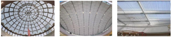 According to the investigation of commercial building atriums, most commercial atriums have skylights, and a few of them are designed without skylights. The daytime and nighttime daylight of atriums without skylights are basically based on artificial lighting, which isn’t included in the scope of this study. Among the commercial atriums with skylights, according to the research results, there are mainly three types of shading: (1) no shading design; (2) fabric shading; and (3) louver shading, as shown in Figure 10. Therefore, this study categorizes these three types of shading and seeks the optimal SAS design parameters under each type.