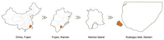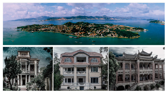 Kulangsu historic international settlement, China’s 52nd World Heritage Site, is located in the coastal city of Xiamen (also called Amoy) in southern China, covering an area of 1.88 square kilometers as a typical historic district dominated by an architectural heritage community (Figure 1). Its main heritage feature is the multi-culture integration, and it contains a cross-cultural architectural identity and urban districts characterized by the integration of Xiamen’s regional culture with oversea Southern and Western cultures [64,65].