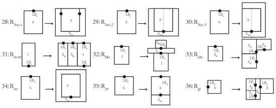 Similar to the superimposed outside veranda, the external secondary spaces such as Hu Cuo, Yi Lou, and Ju Tou can be positioned with the help of label sets by establishing the corresponding rules (Rpr, Rwh), that is, typical layouts such as “four rooms towards lobby + inner corridor + Hou Luo”, “one-lobby with two attach rooms + Yi Lou” can be established on the basis of the prototype. These external secondary spaces often affect the size and form of the outside veranda. For example, Yi Lou is usually a truncated outside veranda, while Ju Tou is in the form of connecting to or truncating the outside veranda. These changes lead to a great increase in the variability and complexity of the floor plan, and require that the principles of change be set at the level of rule establishment for the outside veranda.