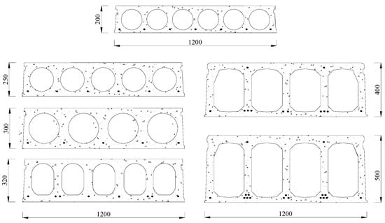 Prestressed HCS were first produced with a total thickness varying from 150 mm to 250 mm. This relatively small thickness did not allow using such slabs in longer spans. However, with the successful use of the units in different applications, thicker HCS sections of an overall depth of 400 to 500 mm were developed to resist higher loads and to be used for longer spans. Circular voids are commonly used in HCS of smaller sections, whereas noncircular voids were commonly associated with deeper sections, as can be seen in Figure 1.