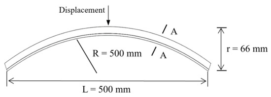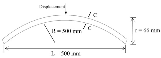 The two ends of thin-shell structure are uniformly set as simple supports. The degrees of freedom in the direction of X and Y are constrained, as shown in Figure 13. Since the simulation is a line load test, the reference point is set as the center of the compression bar and the displacement load is applied along direction Y. Other directions are constrained. As the rigid body element, there is no need to couple the reference point with the rigid body before loading and consider that the compression bar is crushed during the loading process, which improves the calculation convergence and eliminates the stress concentration phenomenon at the loading point.