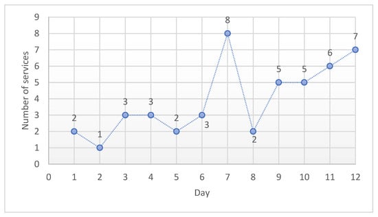 The optimal sequencing results incurred zero delay costs. Figure 13 depicts the number of daily finished service orders.