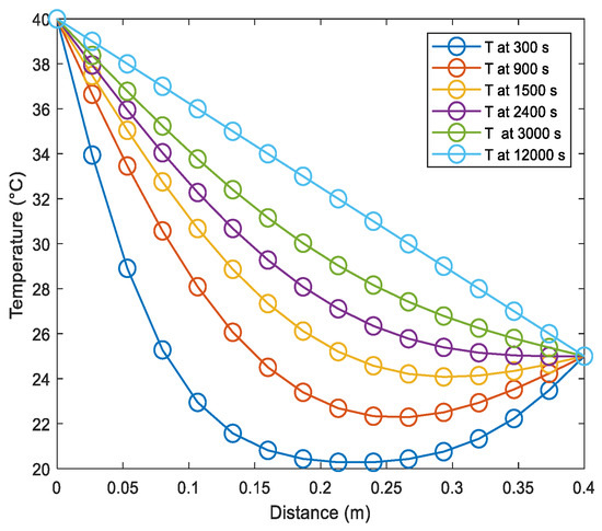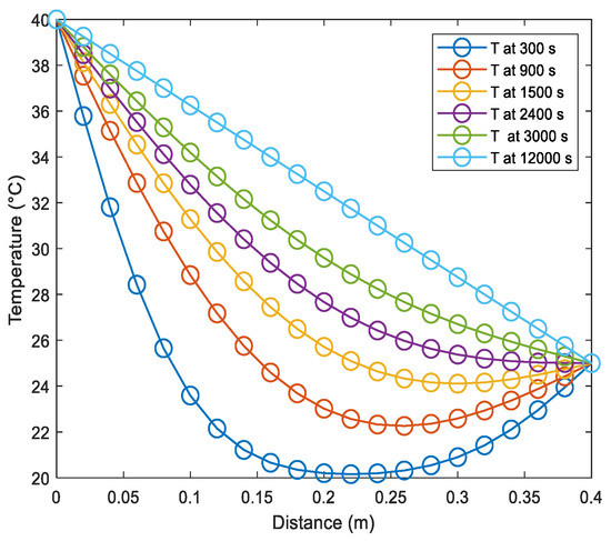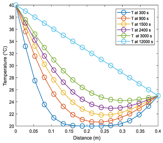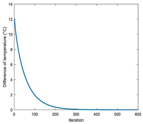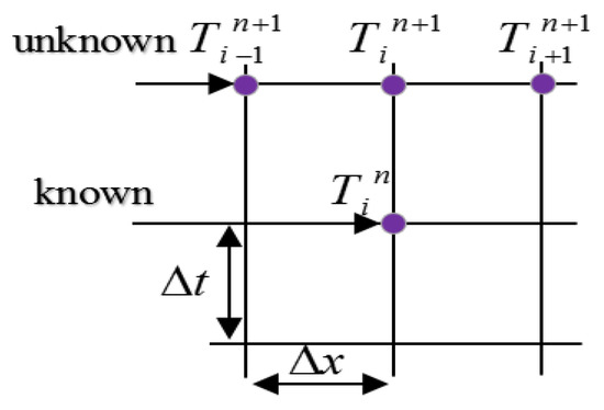 The calculation starts with . So, we calculate through Equation (2). In this step, the instantaneous temperature is calculated based on the initial temperature and the boundary conditions.