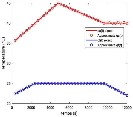 The solution of the conduction problem (10) with unknown boundary conditions and is an inverse heat conduction problem. The objective of this method is to find the boundary conditions and which allow the reproduction of the temperature evolution to be determined experimentally at the location of coordinates .