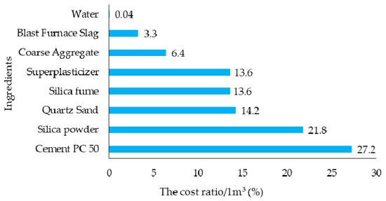 The cost ratio of the components in 1 m3 of concrete (C2 sample).