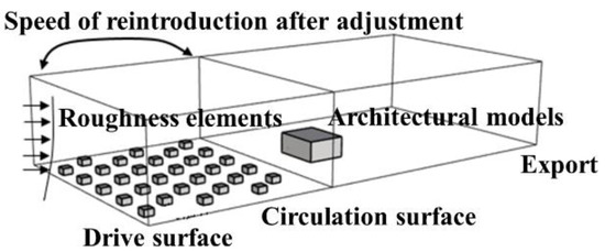 where is height-dependent parameters. Both methods are applied to estimate the size and arrangement of the rough elements in the pre-simulation method using the pseudo-periodic boundary conditions. The location of the circulation surface should meet the requirements of the full development of turbulence and minimize the instability caused by the circulation, so generally the distance between the circulation surface and the entrance is taken to be higher than the thickness of the atmospheric boundary layer.
