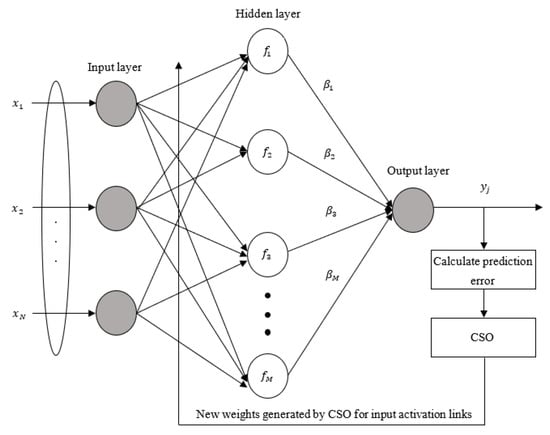 The CBR values depend on the gradation characteristics, plasticity characteristics, and compaction characteristics, but theoretical function is not available to calculate the value of CBR from the available parameters. Therefore, an empirical expression is required to estimate the CBR value from the independent variables. Machine learning models are suitable in such conditions to predict the values of the output variables using the raw data of the input. However, the number of hidden layer neurons, the initial weights of the input and output activation links are randomly generated, which may not provide acceptable and better results in all the trials. Consequently, optimal values of these weights enhance the accuracy of the predicted outputs and reduce the errors between the actual and estimated CBR values. For this purpose, an integrated ELM-CSO model is proposed in this study to predict the CBR values with better statistical measures. The weights of the ELM model are tuned with the CSO algorithm, and the integrated approach is provided in this section in terms of overview of the ELM, CSO, and integrated ELM-CSO approach.