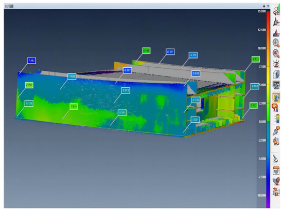 In this case study, we applied the three-point positioning technique and completed positioning and measurements. The follow-up inspection and measurements are achievable. Regarding this steel tower, the deviation on the axis of each component for the case study (Figure 12) after bridge closure is shown below in Table 8.
