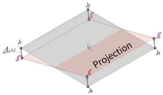 The value of can be minimized by solving translation and rotation parameters. The mathematical model is shown in Formula (5).