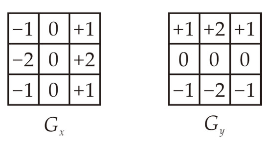In this study, the Sobel operator is used to convolve the spot image to extract the spot edges, and the Sobel convolution factors corresponding to the x and y directions are shown in Figure 3.