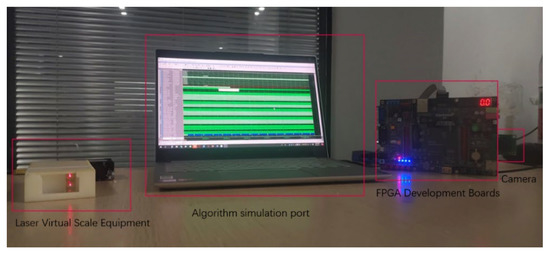 To measure the results in real time, this system saves the image pair in DDR2 and then processes the image 1000 times repeatedly to measure the overall time, thus obtaining the average time required to process each frame and calculating the average processing speed. In addition, the laser virtual scale algorithm was implemented on the laptop side using VS2017 and OPENCV, and the running speeds of both are shown in Table 4.
