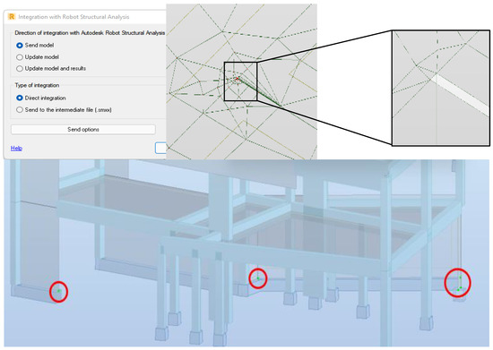 Once the structural model was completed and the consistency of the analytical model was checked, the model was transferred to the structural calculation system, Robot, in order to perform the structural analysis. The Revit/Robot data transfer of the structural BIM model between the two BIM-based systems was carried out by using the Revit/Robot plug-in through the direct integration option, allowing a fast two-way transfer of information (Figure 6).
