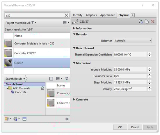 Figure 7. C30/37 concrete properties.