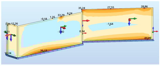 Figure 14. Efforts on the basis of the retaining walls.