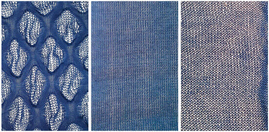 - Francis, N.; Sparkes, B. 3-Knitted Textile Design. In Textile Design; Briggs-Goode, A., Townsend, K., Eds.; Woodhead Publishing Series in Textiles; Woodhead Publishing: Sawston, UK, 2011; pp. 55–87e. ISBN 978-1-84569-646-7. [Google Scholar]