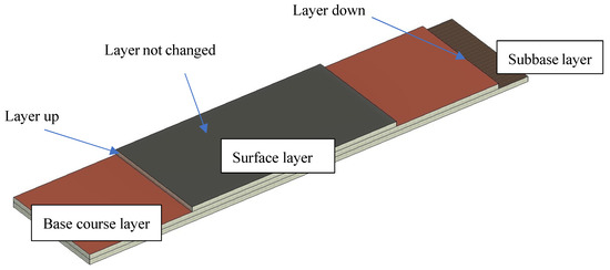 As shown in Figure 1, the main three scenarios of pavement layer change commonly observed in road pavement construction are layer not changed, layer up, and layer down. Hence, road layer detection can be carried out with the layer change information and geometric design of road construction.
