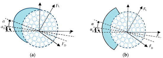 Wind-driven wet snow on transmission lines in winter can accumulate on the windward side, forming hard deposits with sharp edges. The final asymmetric shape of the ice may cause galloping. China has conducted extensive research on ice shape in recent years. Yu et al. [21] experimentally studied the dependence of the size and shape of ice on the duration of the ice and some structural properties. Xu et al. [22] studied the aerodynamics of circular cylinders with and without ice accretion through wind tunnel tests. Crescent ice and sector ice are two common forms of ice covering transmission lines and are the most likely to occur. The focus of this study is iced conductors in crescent and sector shapes. The aerodynamic coefficients were ascertained by the test. The cross-sectional model of the crescent-shaped ice conductor is shown in Figure 1a. The cross-sectional model of the sector-shaped ice conductor is shown in Figure 1b.