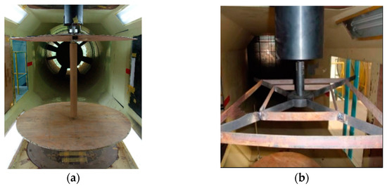 The tests of the iced conductor were performed in a 1.4 × 1.4 m direct-action wind tunnel, as indicated in Figure 4a. The conductor force test model was mounted vertically on a special support device located in the center of the turntable in the wind tunnel test section (Figure 4b). The wind tunnel was a DC low-speed wind tunnel with a wind speed range of 0–65 m/s. The conductor model was in the center of the wind tunnel. Through observation of the galloping of the transmission line in operation, it was observed that the wind speed range was normally within 4~20 m/s, and the transmission line would gallop. The initial angle of wind attack was 0°, and various angles of wind attack between 0° and 180° were employed during the wind tunnel test to gauge the aerodynamic coefficients. The increment was set at 5° (considering the expense of the wind tunnel test).