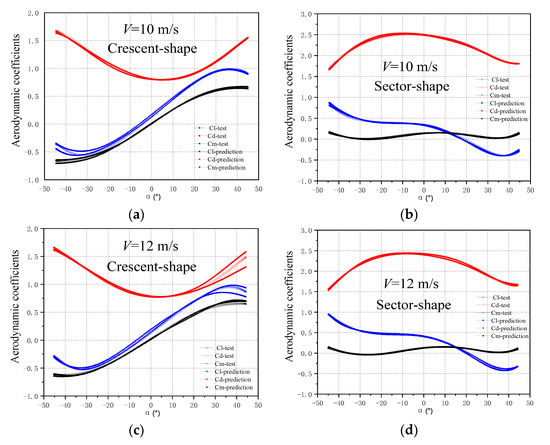 Prediction results of the crescent steady aerodynamic coefficients.
