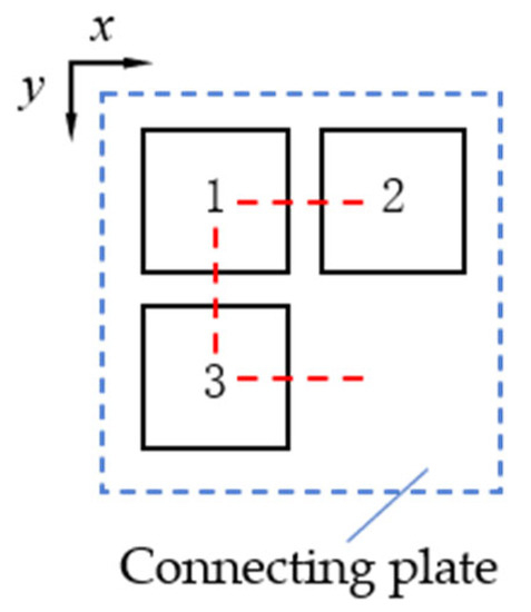 The form of module assembly will affect the lateral stiffness of the modular building. The law is explained in detail by the three columns constrained by the connecting plate, as demonstrated in Figure 5.