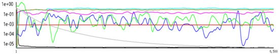 Therefore, the air purifier position in case 4 was identified to have the best air purification performance. The convergence curve for the simulation of case 4 is shown in Figure 8. One possible reason is that the air purifier position in case 4 is at the center of the floor plan; it is located in the main area of the floor plan, thus it could induce the airflow in the main area in an efficient way. In addition, it is also close to the side hall, which could also affect the airflow pattern within the side hall region, which allows it to produce the air turbulence in a more efficient and reasonable way. Therefore, the air purifier in case 4 could achieve efficient air purification for the main area without neglecting the side hall.