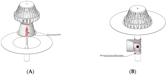Flow control drain: (A) Passively Controlled System (PCS) and (B) Actively Controlled System (ACS).