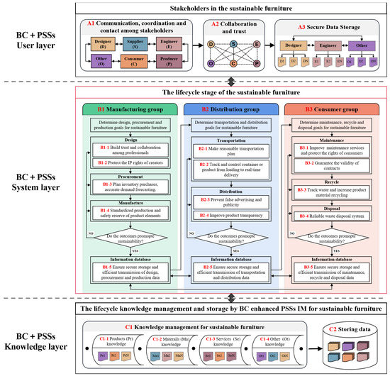 However, few studies have established the connection between BC, PSSs IM, and sustainable furniture, and limited literature has applied PSSs and BC technology to the whole lifecycle of furniture to promote its sustainable development. Annarelli et al. (2016) found that only a few studies in the academic literature on PSSs have addressed sustainability as a major theme [29]. Meanwhile, as noted by Mont (2002), there are some fragmented PSSs solutions, but few examples are done on a lifecycle basis [4]. Therefore, this paper aims to integrate the potential roles of BC and PSSs in the lifecycle of sustainable furniture to narrow this limitation. It is the first attempt to construct a conceptual BC-enhanced PSSs IM (BC-PSSs) framework for sustainable furniture from the perspective of lifecycle stages.