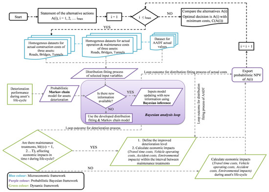 Furthermore, several national authorities and organizations developed practice guidelines for assessing policies via CBA in a Mi-D-S environment. An explicit illustration of these reports can be seen in Table 3, where the “*” symbol indicates guidelines referring to the theoretical basis of the CBA approach, while the “X” symbol indicates guides with formulas and equations used in CBA. Four out of the five national guidelines, Minnesota DOT [31], Transport Infrastructure Ireland [32], UK Department for Transport [33] and World Bank [34], offered technical instructions or theoretical principles concerning consumer surplus, producer surplus and externalities. In contrast, California DOT [35] developed the so-called Cal-B/C software, a Microsoft Excel spreadsheet-based tool that provides economic CBA for a range of TIPs. The basic version of Cal-B/C does not contain risk analysis and it is focused on specific project-based applications, meaning that a series of input variables, namely annual average daily traffic (AADT), international roughness index (IRI), vehicles speed, etc., should be provided by the user for software’s running.