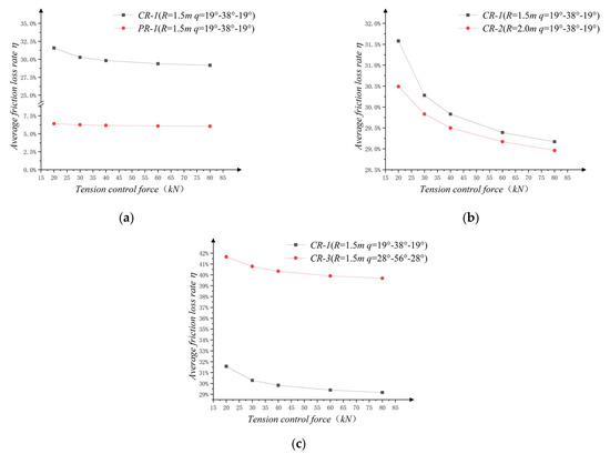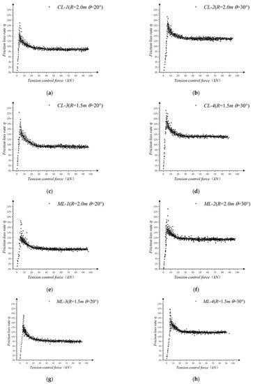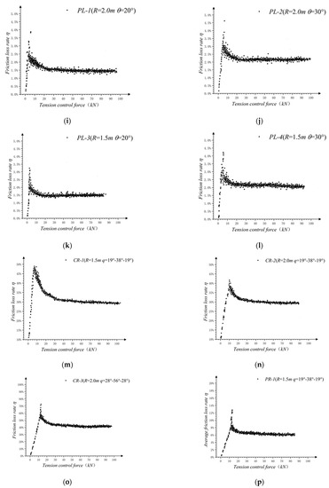 The friction loss rate under tension control forces at various levels was calculated by the following formula (Equation (1)):