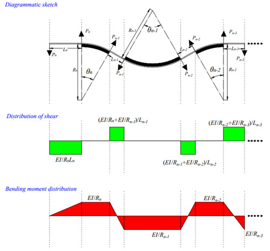 During the single-bending test, the curvature gradient segment was considered a straight-line segment, so the approximate value of the concentrated force, Pi, could be obtained as follows (Equation (2)):