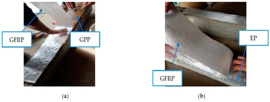 Strengthening RC beams with (a) GFRP and (b) EP (adapted from [3]).