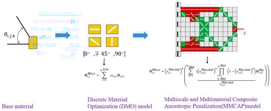 Schematic showing concurrent macroscale and multimaterial topology design optimization for composite laminates with minimum structural compliance.