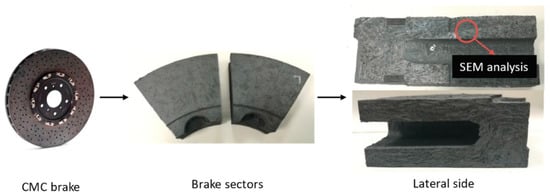 Matrix composite materials have a wide range of applications due to their special properties, and have been applied in recent years in biomedical, biodegradable, brake pads, radiation shielding, and other related fields. Manso studied how to improve the wear resistance of metal bone implants by adding hard reinforcements [91]. Studying the use of nontoxic and nonallergenic β, two different in situ composite materials were prepared by adding NbC powder to Ti-Nb alloy as the matrix material. This strategy can achieve the synthesis of reinforcing phases during the manufacturing process and achieve strong interface bonding through high chemical compatibility. The results showed that the friction and corrosion properties of both composite materials were improved, and the wear amount was less than 50%. These results indicate that the matrix composite material is a potential bone implant material that can improve its wear resistance and degradation process. Kabir’s study introduced a zinc-based composite material for biodegradable implant materials, which added graphene nanosheets to improve its mechanical properties and corrosion behavior [92]. The research results show that the composite material has high mechanical properties and good biocompatibility, making it a potential biodegradable implant material. In the past few years, carbon ceramic brakes have been favored for their light weight, high-temperature resistance, and long lifespan. Bianchi’s research analyzed the environmental impact of carbon ceramic brakes using a lifecycle assessment method, and the specimen implementation program is shown in Figure 14. The results show that although cast iron brakes are more sustainable in the production stage, carbon ceramic brakes prepared from recycled prepreg waste have lower environmental impacts in long-term use [93]. Bhakuni described the development of granular ceramic matrix composite (PCMC) for automobile brake pads prepared by two powder metallurgy methods [94]. The first type shows good density, thermal stability, and low noise, while the second type shows excellent properties such as high scratch hardness. This study indicates that these two PCMC samples outperform traditional commercial brake pads in terms of performance, demonstrating potential effective performance in practical use. Suna introduced a preparation method for low-density polyethylene (LDPE)-based composites using boron carbide, dysprosium tetraborate, dysprosium oxide borate, and boron carbide dysprosium compounds as reinforcing materials [95]. The chemistry, mechanics, morphology, thermal properties, and neutron radiation shielding performance of composite materials were studied in this work. The research results indicate that composite materials not only have effective neutron shielding performance, but also have performance comparable to pure boron carbide LDPE-based composite materials. This composite material has potential for safe applications that require protection from neutrons and gamma rays.