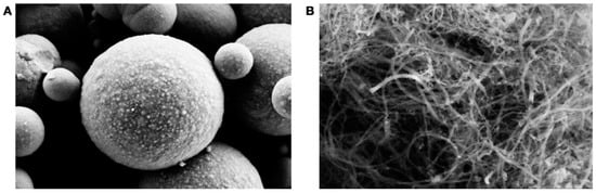 The electron micrographs of (A) original CI particles and (B) MWNTs (adapted from [101]).