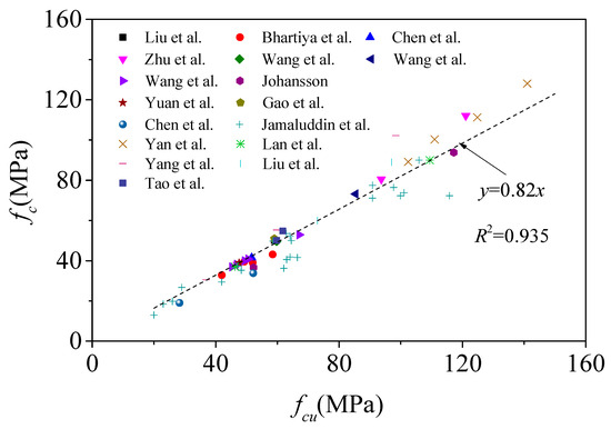 | References | R (%) | fcu (MPa) | fc (MPa) | Number |