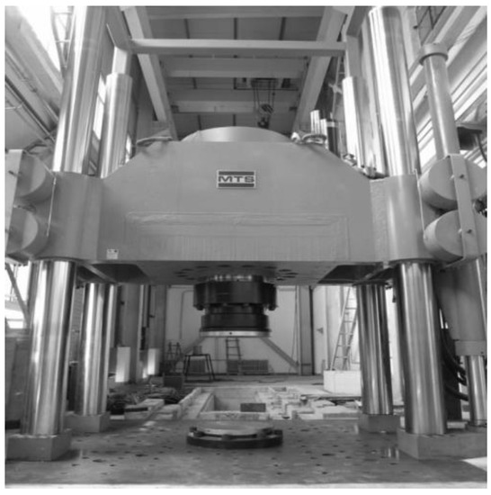 In this test, the 15 MN large-scale MTS material testing machine of the China Institute of Water Resources and Hydropower Research is used, as shown in Figure 2, which can meet the requirements of static and dynamic testing of fully-graded concrete.